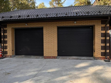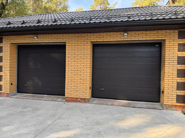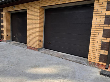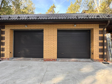 Панели ворот выполнены в серо-коричневом цвете (RAL 8019) и имеют стильный дизайн "M-гофр", который придаёт внешнему виду современный и аккуратный вид. Ворота отличаются высокими показателями теплоизоляции и долговечности, что делает их оптимальным выбором для эксплуатации в любых погодных условиях.